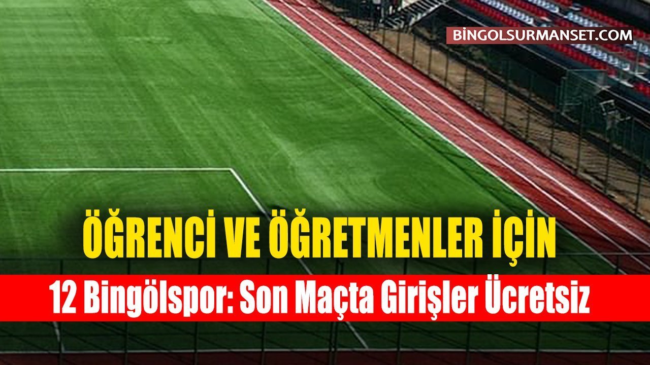 TFF 3. Lig 2. Grup'ta şampiyonluğunu ilan eden 12 Bingölspor, sezonun son maçında sahasında Silifke Belediyespor'u konuk edecek. 18 Nisan 2026 Cumartesi günü oynanacak karşılaşmada kulüp, 8-16 yaş arası tüm öğrenciler ve öğretmenler için girişlerin ücretsiz olacağını açıkladı.