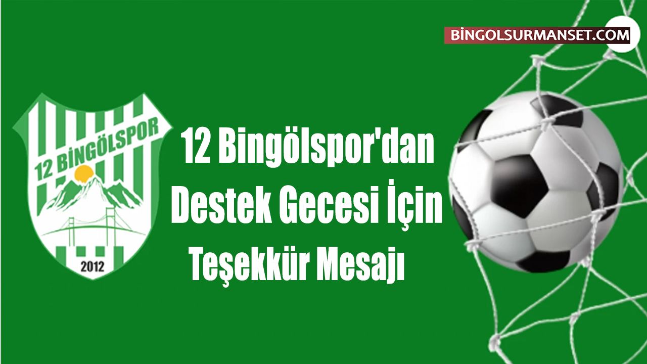 12 Bingölspor Kulübü, Ankara'da düzenlenen ve kulübe yaklaşık 28 milyon TL'lik destek sözünün verildiği dayanışma gecesine ilişkin resmi bir teşekkür mesajı yayınladı. Mesajda, geceye katılarak kulübü onurlandıran isimlere en içten şükranlar sunuldu.