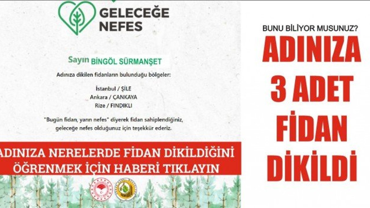Öte yandan E-Devlet'te Fidan Sahiplenme (Geleceğe Nefes Ol) başlığı altında dikilen fidanların sertifikalarını görüntülemek mümkün. Peki adınıza dikilen fidanlar nerede? İşte yanıtı...