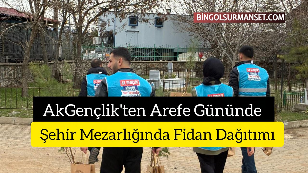 Arefe gününün manevi atmosferinde Bingöl Şehir Mezarlığı'nda düzenlenen etkinlikte AkGençlik üyeleri, kabir ziyareti yapan hemşehrileriyle bir araya gelerek fidan dağıtımı gerçekleştirdi. Duaların semaya yükseldiği, geçmişlerin rahmetle yad edildiği bu mübarek günde, hem hatıraları yaşatmak hem de geleceğe nefes olacak bir iyiliğe vesile olmak için anlamlı bir adım atıldı.