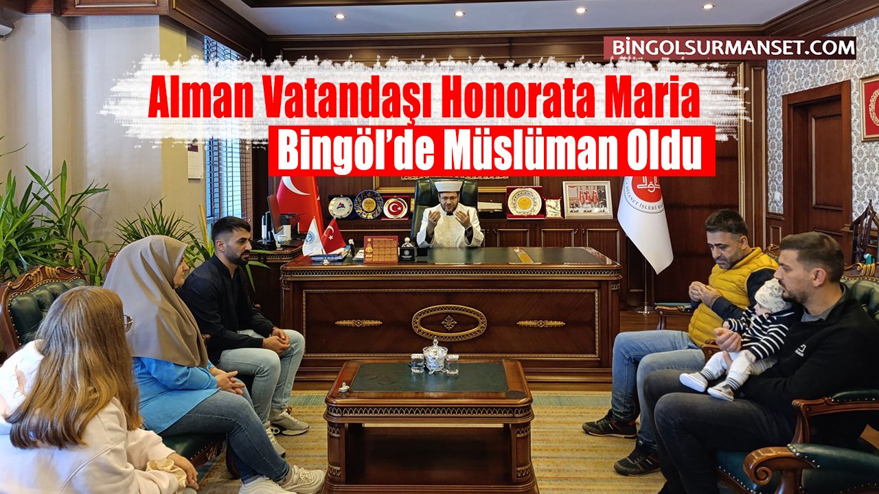 Polonya asıllı Alman vatandaşı Honorata Maria, Bingöl İl Müftülüğü’nde gerçekleştirilen ihtida töreniyle İslam dinini seçti. Bingöllü eşi ve çocuklarının da katıldığı törende, İl Müftüsü Orhan İmamoğlu refakatinde kelime-i şehadet getiren Honorata Maria, “Eda” ismini alarak Müslüman oldu.