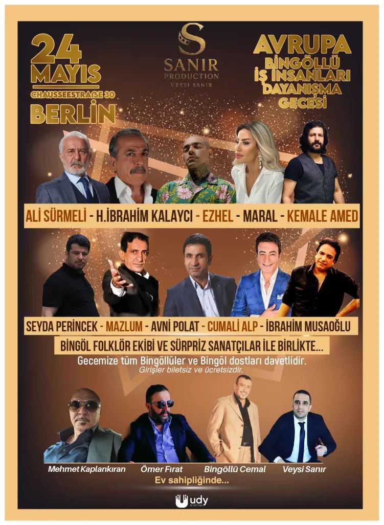 Chausseestraße 30, 10115 Berlin adresinde düzenlenecek programa çok sayıda Bingöllü vatandaşın yanı sıra, sanatçılar, siyasetçiler, milletvekilleri ve iş insanlarının da katılması bekleniyor.
