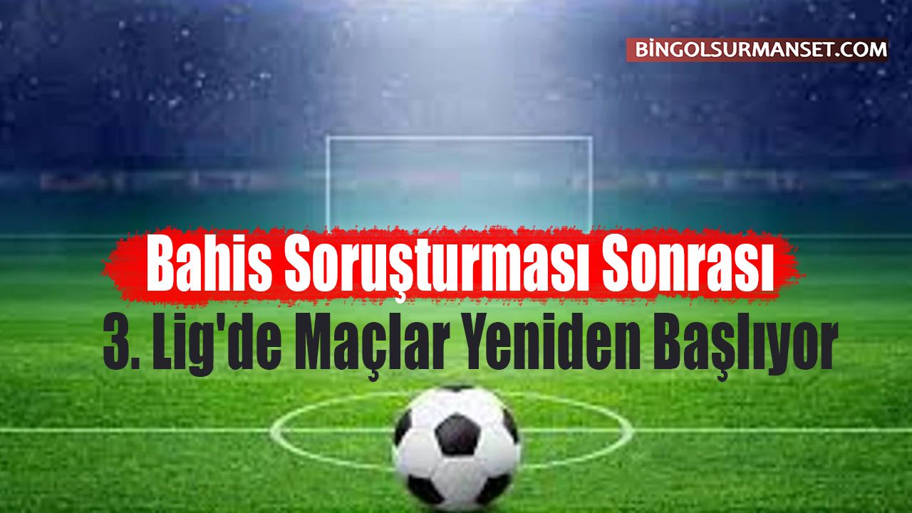 Bahis soruşturması nedeniyle ertelenen 3. Lig 11. Hafta maçlarının yeni programı da belli oldu. TFF'den yapılan açıklamaya göre, 12 Bingölspor'un yer aldığı 3. Lig 2. Grup'taki 11. Hafta maçları 29 Kasım'da başlayacak.