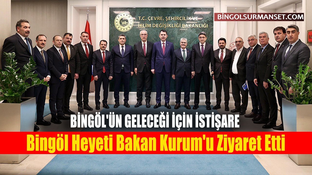 Bingöl Valisi Cahit Çelik, beraberindeki heyetle birlikte Çevre, Şehircilik ve İklim Değişikliği Bakanı Murat Kurum'u makamında ziyaret etti. Toplantıya Bingöl Milletvekilleri Feyzi Berdibek ve Zeki Korkutata, Bingöl Belediye Başkanı Erdal Arıkan, AK Parti İl Başkanı Yılmaz Seven, ilçe ve belde belediye başkanları, İl Genel Meclis Başkanı ile Bingöl Çevre, Şehircilik ve İklim Değişikliği Müdürü katıldı.