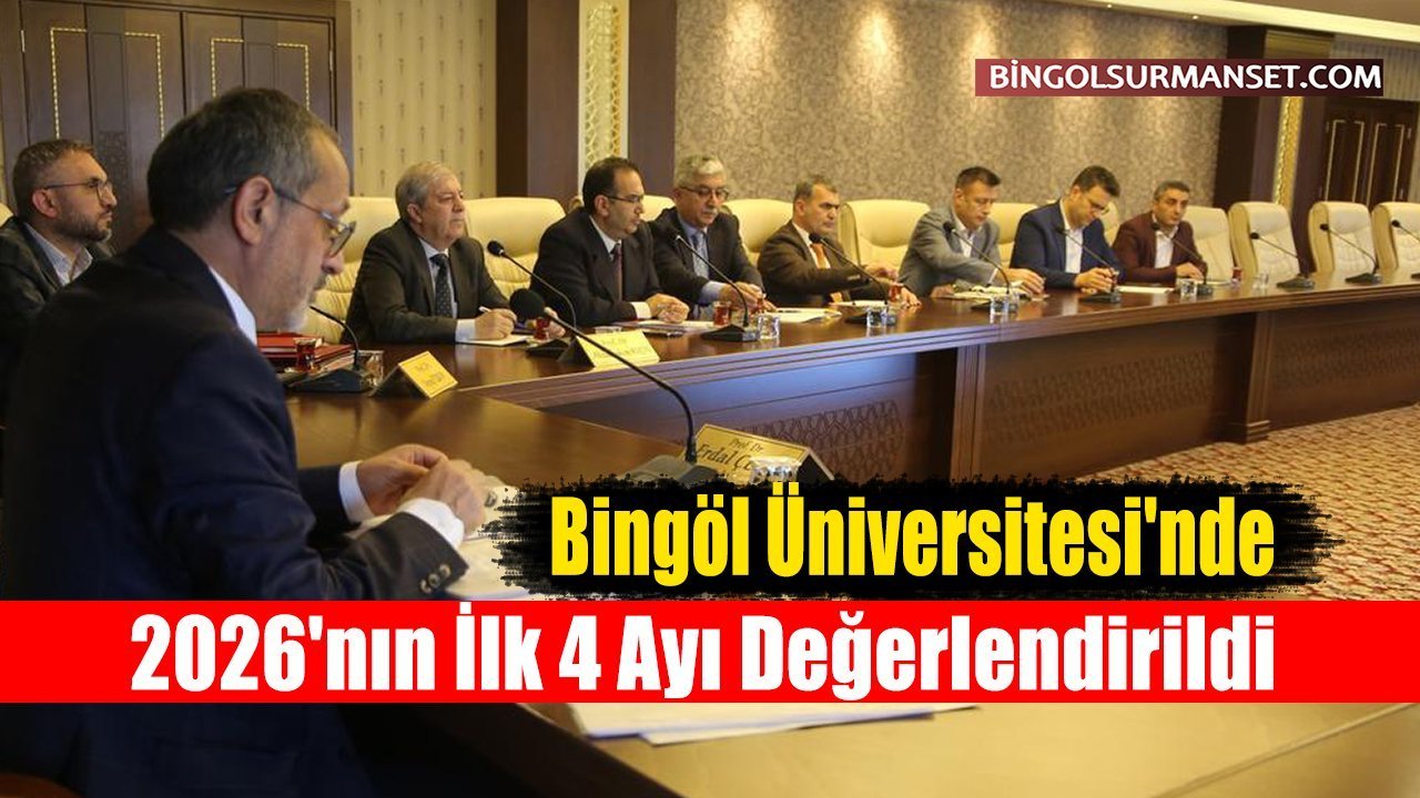 Bingöl Üniversitesi'nde “2026 Üretim Yılı” kapsamında yürütülen çalışmaların değerlendirilmesine yönelik toplantı, Rektör Prof. Dr. Erdal Çelik başkanlığında Senato Odası'nda düzenlendi. Toplantıya Rektör Yardımcıları Prof. Dr. İbrahim Yasin Erdoğan ve Prof. Dr. Abdulhakim Koçin, Genel Sekreter Vekili Prof. Dr. Veysel Turan ile fakülte dekanları katıldı. Geniş katılımla gerçekleştirilen toplantıda, 2026 yılının ilk dört ayını kapsayan Ocak, Şubat, Mart ve Nisan dönemlerine ait faaliyetler kapsamlı şekilde değerlendirildi.