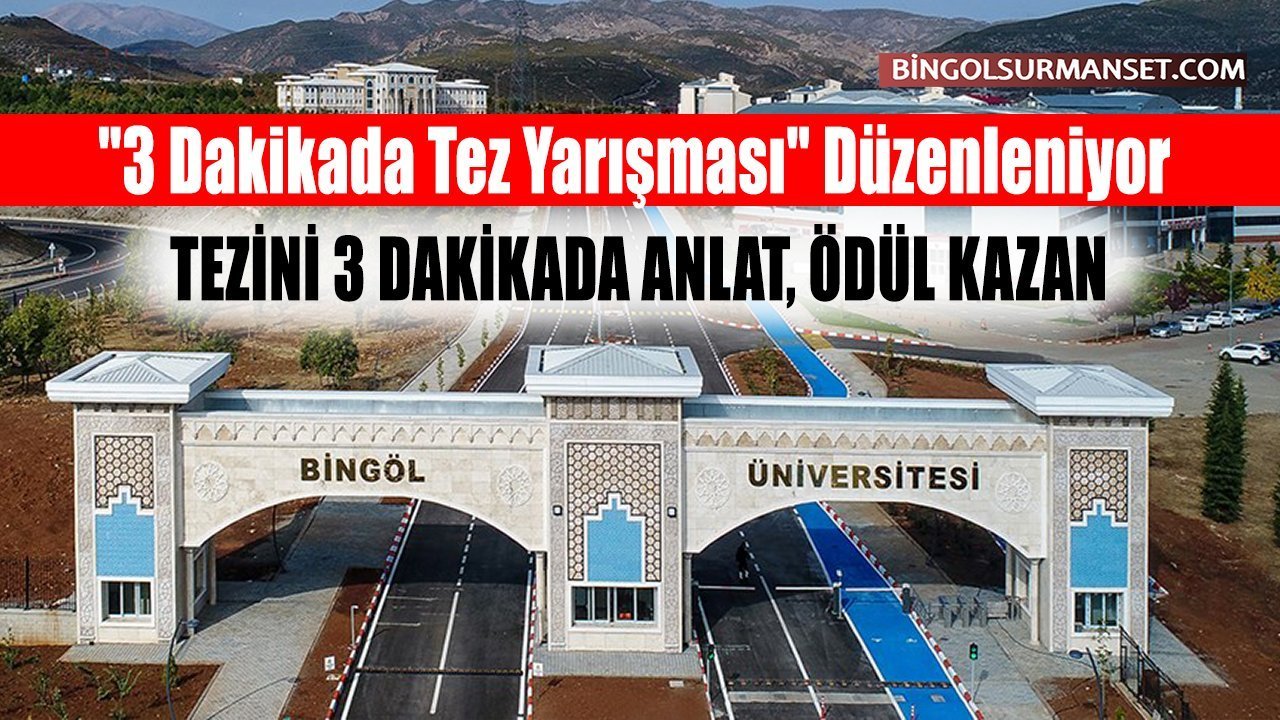 Bingöl Üniversitesi Sosyal Bilimler Enstitü Müdürlüğü, lisansüstü öğrencilere yönelik “3 Dakikada Tez Yarışması” düzenliyor. Yarışma kapsamında yüksek lisans ve doktora tezi hazırlayan veya tamamlayan öğrenciler, çalışmalarını yalnızca 3 dakika içinde jüriye ve dinleyicilere sunma fırsatı bulacak.