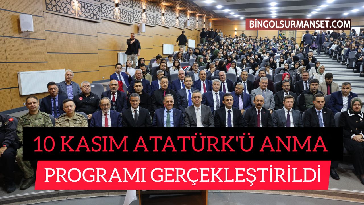 Bingöl'de, Türkiye Cumhuriyeti'nin kurucusu Gazi Mustafa Kemal Atatürk, ebediyete intikalinin 87. yıldönümünde düzenlenen törenle anıldı. Bingöl Belediyesi Konferans Salonu'nda saat 10.00'da başlayan anma programına il protokolü ve vatandaşlar katıldı.