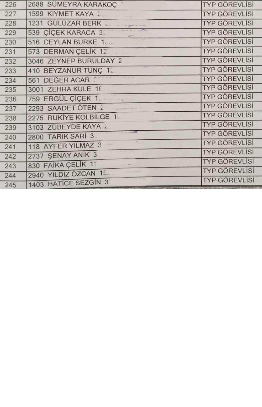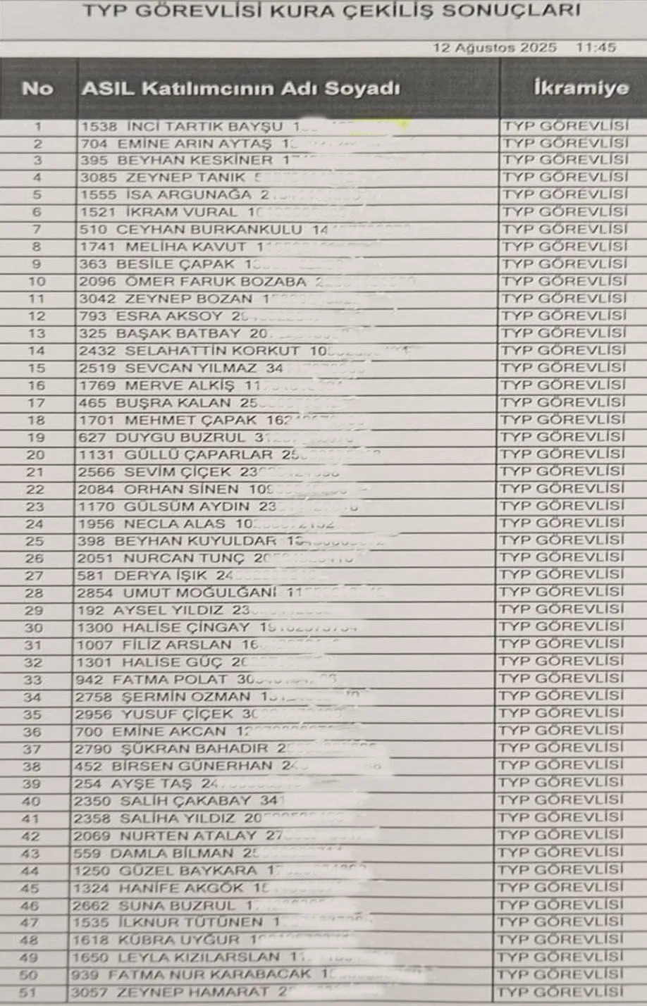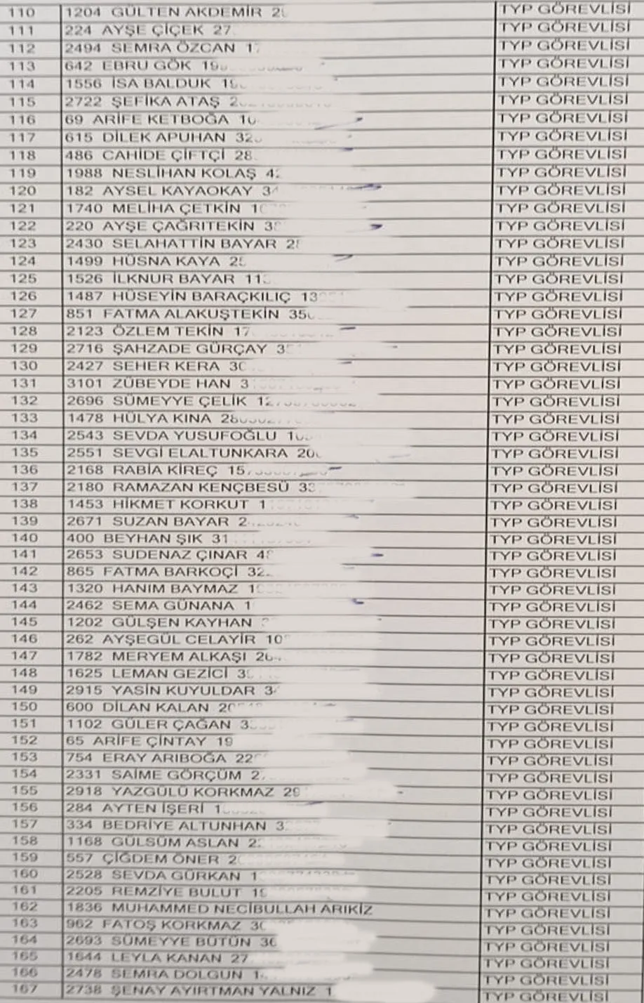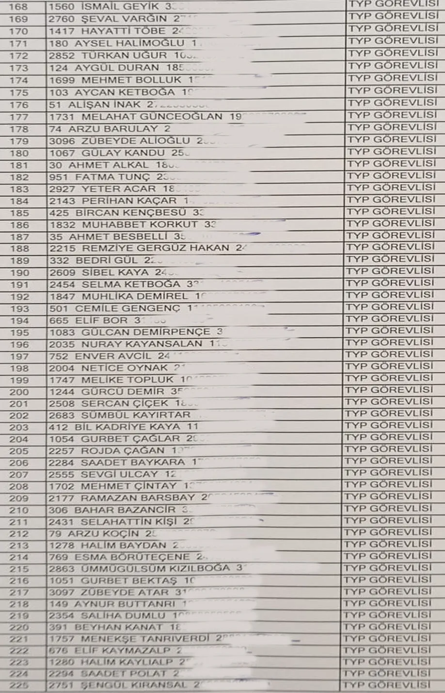 Bingöl Merkez için 245 TYP personelinin belirlendiği kura sonuçları şöyle: