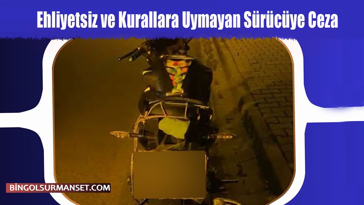 Bingöl İl Emniyet Müdürlüğü Asayiş Şube Müdürlüğü Motosikletli Polis Timleri Büro Amirliği ekipleri tarafından yapılan denetimler sonucunda, ehliyetsiz ve kurallara uymadan motosiklet kullanan bir sürücü yakalandı.