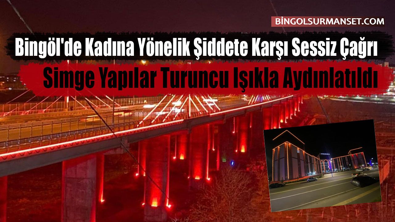25 Kasım Kadına Yönelik Şiddete Karşı Uluslararası Mücadele Günü kapsamında, Bingöl'ün iki önemli simgesi olan Çapakçur Viyadüğü ve Bingöl Belediyesi hizmet binası turuncu ışıklarla aydınlatıldı. Bu anlamlı aydınlatma, kadına yönelik şiddete karşı toplumsal farkındalık oluşturmayı ve dayanışma mesajı vermeyi amaçladı.