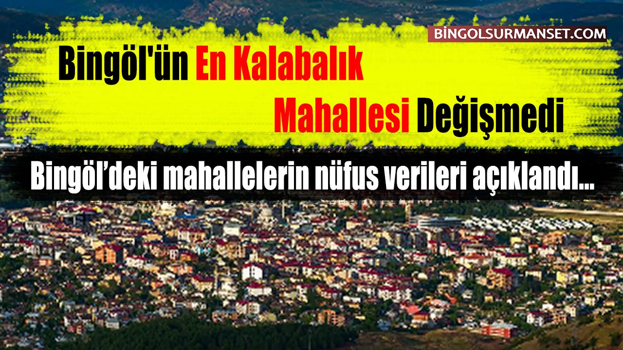 Kültür Mahallesi, 23 bin 856'lık nüfusuyla Bingöl'ün en kalabalık mahallesi olarak öne çıkarken, ilin en küçük mahallesi ise 454 nüfusuyla yeni kurulan Esenler Mahallesi oldu.