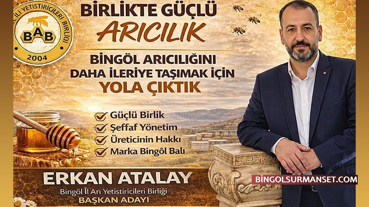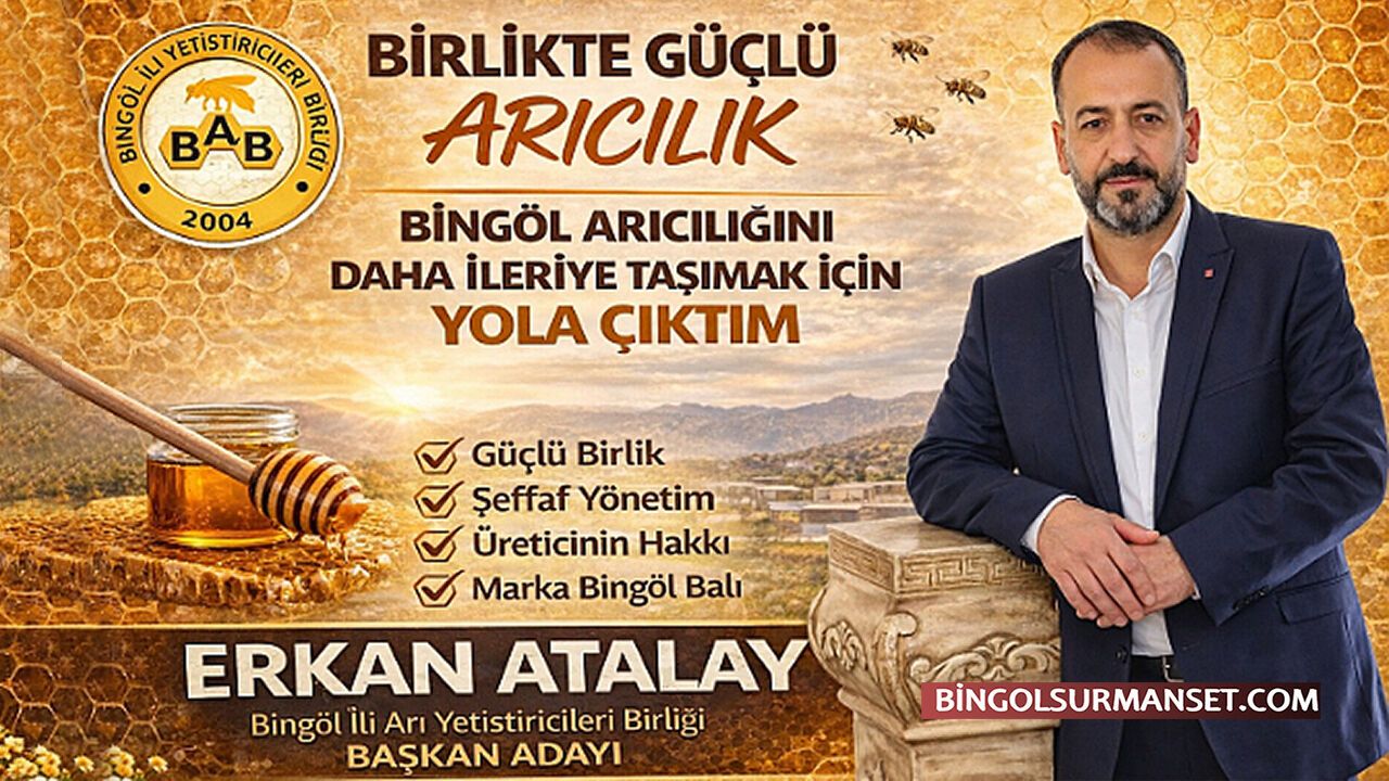 Erkan Atalay açıklamasında “Bingöl’ümüzün zengin florası ve arıcılık geleneği büyük bir potansiyele sahiptir. Ancak arıcılarımızın karşılaştığı pazarlama sorunları, maliyet artışları ve sektörel desteklerin yetersizliği gibi konuların güçlü bir birlik yönetimiyle aşılması gerekmektedir. Bu anlayışla Bingöl Arı Yetiştiricileri Birliği Başkanlığına aday oldum.” ifadelerine yer verdi.