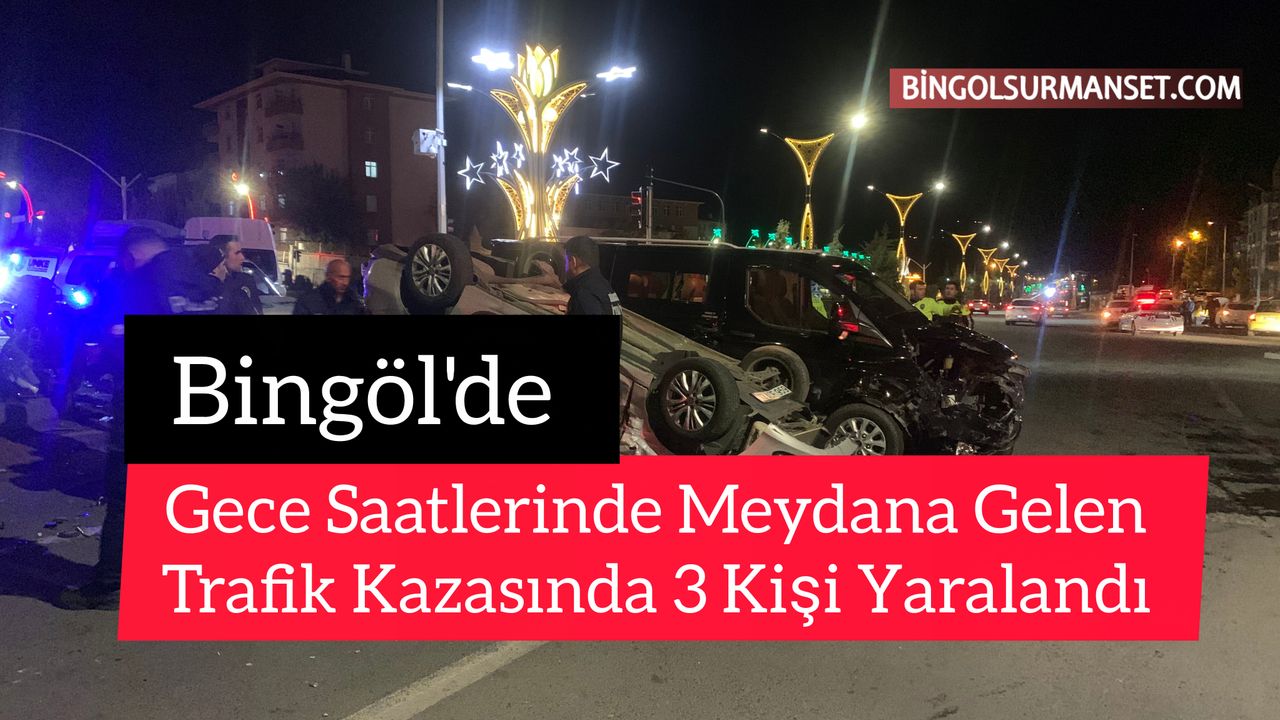 Bingöl'ün Kültür Mahallesi TOKİ Kavşağı'nda gece saatlerinde meydana gelen trafik kazasında iki araç çarpıştı, kazada 3 kişi yaralandı.