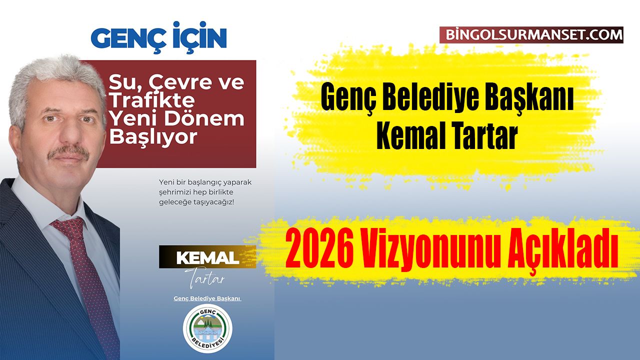 Genç Belediye Başkanı Kemal Tartar, ilçede 2026 yılı boyunca hayata geçirilecek proje ve uygulamalara ilişkin kapsamlı bir açıklama yaptı. Açıklamada, su yönetiminden çevre düzenine, trafik güvenliğinden denetim faaliyetlerine kadar birçok alanda yeni hedefler kamuoyuyla paylaşıldı.