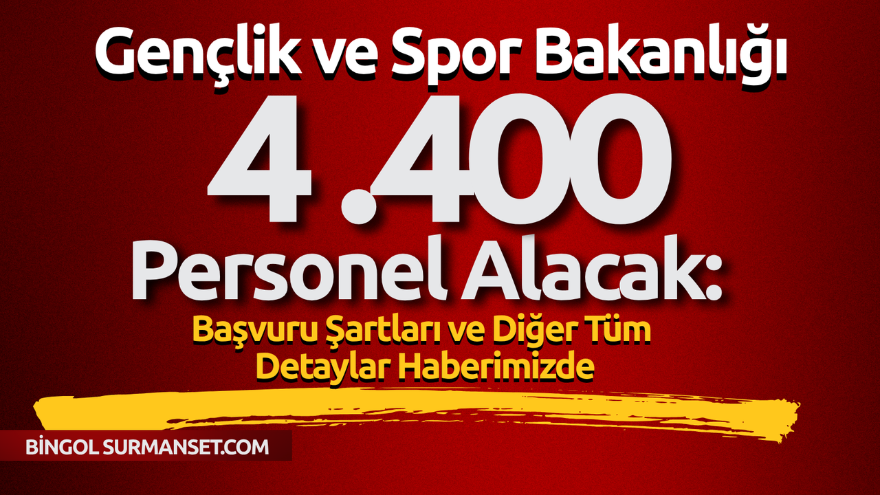 Gençlik ve Spor Bakanlığı (GSB), Türkiye genelinde çeşitli kadrolarda görevlendirilmek üzere toplam 4.400 personel alacağını açıkladı. Bakanlık, alımların genç istihdamını artırmak ve hizmet kalitesini yükseltmek amacıyla yapılacağını belirtti.