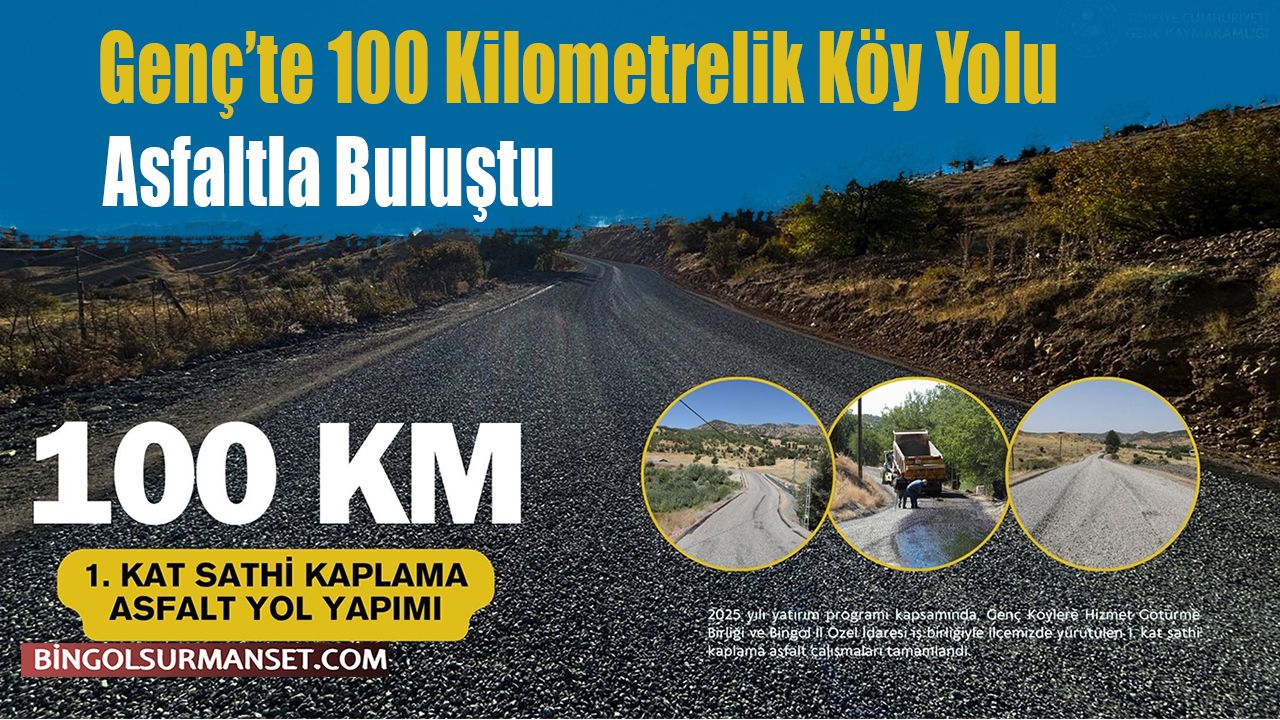 Genç ilçesinde ulaşım altyapısını güçlendirmek amacıyla yürütülen 1. kat sathi kaplama asfalt çalışmaları tamamlandı. Genç Köylere Hizmet Götürme Birliği ve Bingöl İl Özel İdaresi iş birliğiyle hayata geçirilen projeler kapsamında, toplamda 100 kilometrelik köy yolu asfaltlanarak ulaşıma açıldı.