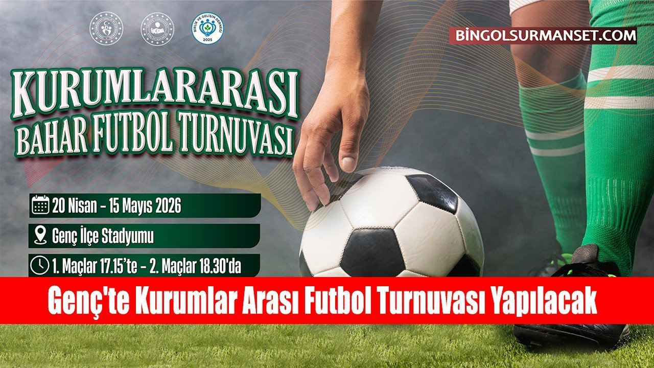 Genç ilçesinde kurumlar arası dostluk ve rekabetin bir arada yaşanacağı heyecan dolu bir futbol turnuvası düzenleniyor. Genç Kaymakamlığı organizasyonunda, İlçe Gençlik ve Spor Müdürlüğü ile Genç Birlik ve Gelişim Derneği'nin ortaklaşa düzenlediği “Kurumlar Arası Bahar Futbol Turnuvası” için geri sayım başladı.