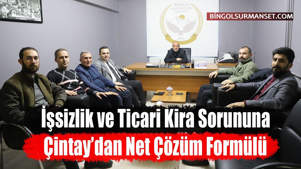 Bingöl Ticaret ve Sanayi Odası Başkanı Kadir Çintay, Bingöl Gazeteciler Cemiyetine hayırlı olsun ziyaretinde bulunarak burada işsizlik ve ticari kira sorununa ilişkin değerlendirmelerde bulundu. Başkan Çintay, Bingöl’de işsizlik ve yüksek iş yeri kiraları sorununa ilişkin çözüm önerilerini paylaşarak, meslek eğitiminin güçlendirilmesi ve ticari alanların planlı biçimde genişletilmesiyle Bingöl ekonomisinin rahatlayacağını ifade etti.
