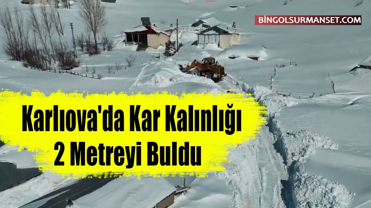 Bingöl'ün yüksek rakımlı ilçelerinden Karlıova'da kar yağışı Şubat ayının son günlerinde de yağmaya devam etti. İlçe genelinde etkili olan yoğun kar yağışı nedeniyle kar kalınlığı yer yer 2 metreye ulaştı. Özellikle yüksek kesimlerde karın iyice arttığı gözlemlendi. Yetkililer kapalı köy yollarını açmak için çalışmaların aralıksız sürdüğünü bildirdi.
