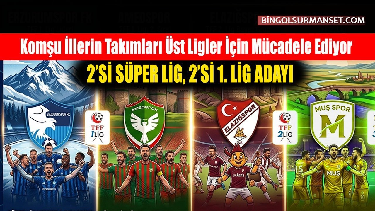 Bingöl'ün komşusu Erzurum'da Erzurumspor FK, 1. Lig'de lider durumda ve Süper Lig'e yükselmek için şampiyonluk mücadelesi veriyor. Diyarbakır'da Amedspor ise 2. sırada yer alarak Süper Lig için ciddi bir aday konumunda.