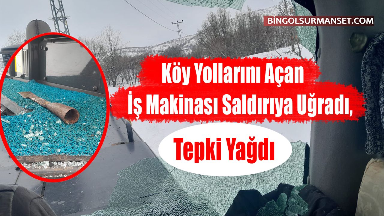 Bingöl'de karla mücadele için zorlu şartlarda çalışan İl Özel İdaresi ekipleri, beklenmedik bir saldırıyla karşılaştı. İl Özel İdaresi'ne bağlı bir iş makinesi, köy yolu açma çalışması yaparken saldırıya uğradı. Saldırıda iş makinesinin camlarının kırıldığı, operatöre de müdahale edildiği öğrenildi.