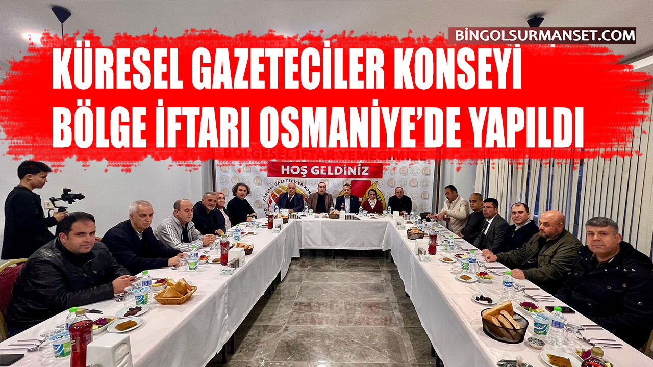 Küresel Gazeteciler Konseyi (KGK) tarafından düzenlenen bölge iftar programı Osmaniye’de gerçekleştirildi. Osmaniye Gazeteciler Cemiyeti’nin ev sahipliğinde Beyoğlu Tesisleri’nde düzenlenen programa; KGK Genel Başkanı Mehmet Ali Dim, Kahramanmaraş İl Temsilcisi Bekir Doğan, Mersin İl Temsilcisi Abdullah Biçer, Kilis İl Temsilcisi Mahmut Özbalcı, Hatay Dörtyol Gazeteciler Cemiyeti Başkanı Esma Kural ile Osmaniye Gazeteciler Cemiyeti Başkanı İsrafil Avcı ve yönetim kurulu üyeleri katıldı.