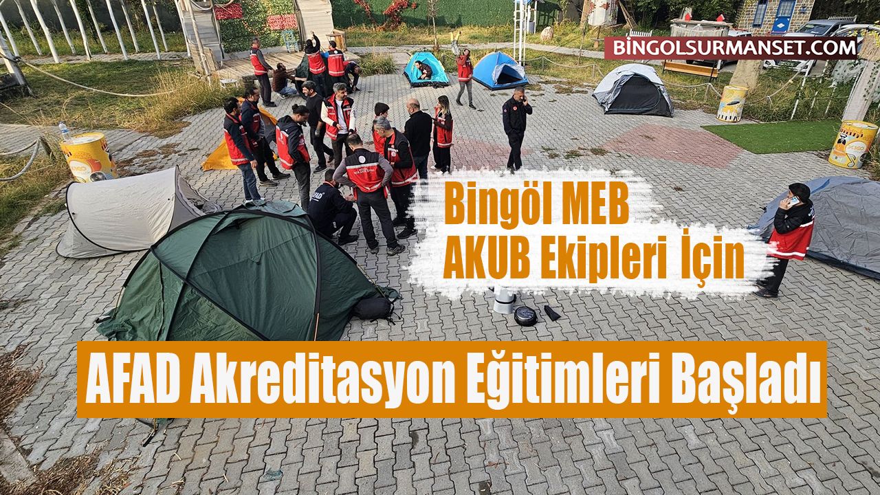Bingöl AFAD İl Müdürlüğü, Millî Eğitim Bakanlığı Arama Kurtarma Birimi (AKUB) ekiplerinin akreditasyon süreci kapsamında eğitim faaliyetlerini başlattı. "Kampçılık Hazırlık Süreci" olarak adlandırılan eğitimlerde, ekiplere kamp alanı kurulumu, barınma düzeni, çevre güvenliği ve sahada yaşam becerileri gibi konularda uygulamalı eğitimler veriliyor.