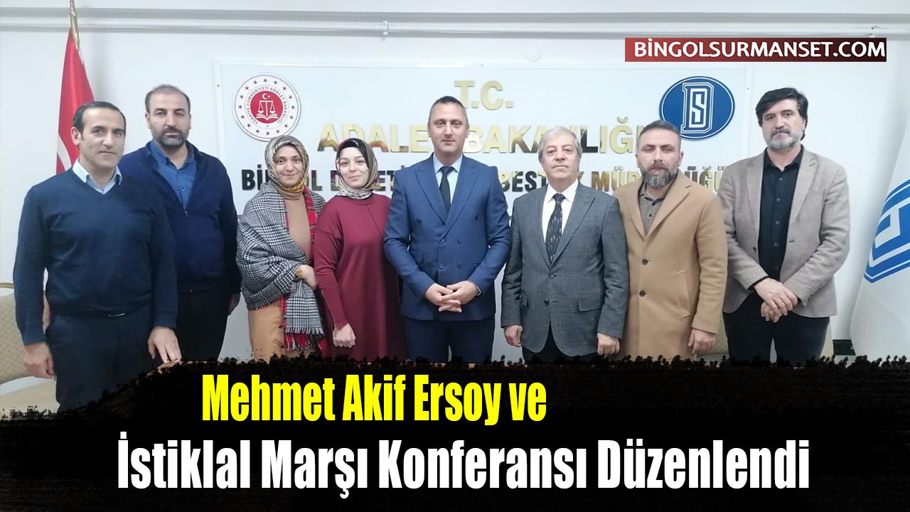 Bingöl Cumhuriyet Başsavcılığı Denetimli Serbestlik Müdürlüğü, “Mehmet Akif ve İstiklal Marşı” konulu bir konferans düzenledi. Etkinliğe konuşmacı olarak katılan Bingöl Üniversitesi Rektör Yardımcısı Prof. Dr. Abdulhakim Koçin, İstiklal Marşı’nın yazılış sürecini ve şairinin hayatını anlattı.