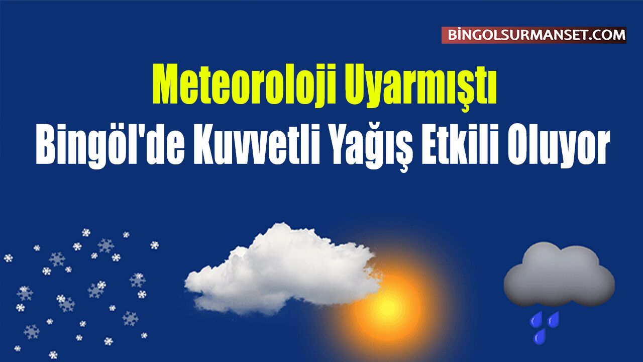 Meteoroloji Genel Müdürlüğü 13. Bölge Müdürlüğü, 14 Mart Cumartesi günü yaptığı açıklamayla Bingöl geneli için kuvvetli yağış uyarısında bulunmuştu. 14 Mart saat 21.00'de başlayıp 15 Mart Pazar günü saat 23.59'a kadar süreceği belirtilen yağışların, il genelinde kuvvetli sağanak ve karla karışık yağmur, yüksek kesimlerde ise yoğun kar yağışı şeklinde olacağı tahmin edilmişti.