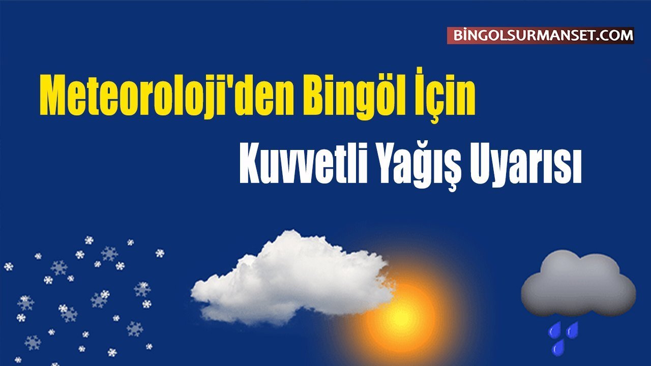 Meteoroloji 13. Bölge Müdürlüğü'nün verilerine göre, Bingöl genelinde 18 Nisan Cumartesi günü sabah saatlerinden itibaren yerel olarak kuvvetli sağanak ve gök gürültülü sağanak yağış bekleniyor. Yağışların, geçerlilik süresi 18 Nisan 2026, 08.00 – 23.59 olarak belirtildi.