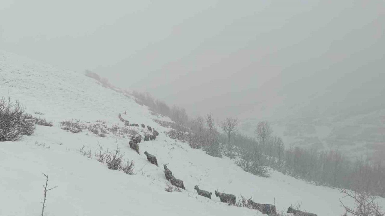Muş’ta etkili olan kar yağışı nedeniyle 241 köy yolu ulaşıma kapanırken, merada otlatılan keçiler ise kara yakalandı.