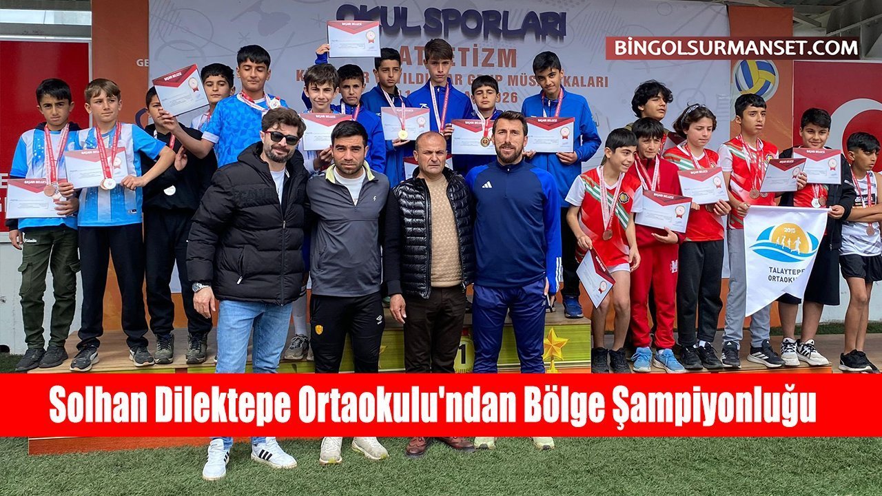 Diyarbakır'da düzenlenen Okul Sporları Atletizm Grup Müsabakaları Küçük Erkekler Kategorisi'nde ilimizi temsil eden Solhan Dilektepe Ortaokulu öğrencileri, sergiledikleri üstün performansla bölge şampiyonu olarak büyük bir başarıya imza attı.