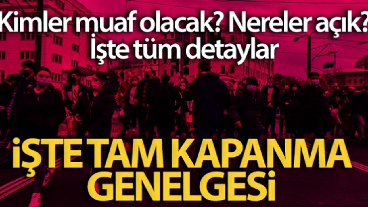 29 Nisan 2021 Perşembe günü saat 19.00'dan itibaren 17 Mayıs 2021 Pazartesi günü saat 05.00'e kadar sürecek olan tam kapanma döneminde ülke genelini kapsayacak şekilde aşağıdaki tedbirlerin alınması gerektiği değerlendirilen genelgede, şu ifadelere yer verildi: