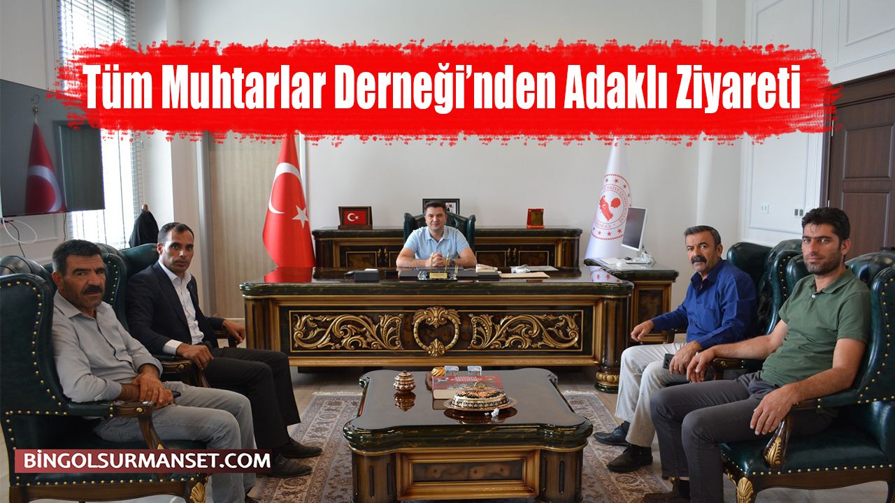 Bingöl Tüm Muhtarlar Derneği Başkanı Nihat Çelik ve dernek üyeleri, Adaklı Kaymakamı Abdullah Sarı ve Adaklı Belediye Başkanı Atilla Erdal Almalı’yı makamında ziyaret etti.