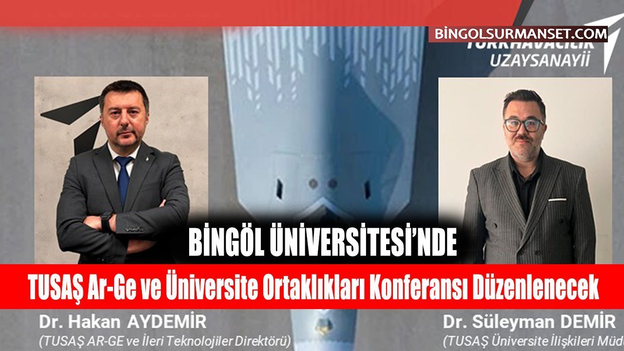 Bingöl Üniversitesi, savunma sanayii ve üniversite iş birliklerine yönelik önemli bir bilgilendirme konferansına ev sahipliği yapacak. “TUSAŞ Ar-Ge ve Üniversite Ortaklıkları Bilgilendirme Konferansı” kapsamında, TUSAŞ AR-GE ve İleri Teknolojiler Direktörü Dr. Hakan Aydemir ve TUSAŞ Üniversite İlişkileri Müdürü Dr. Süleyman Demir konuşmacı olarak yer alacak.