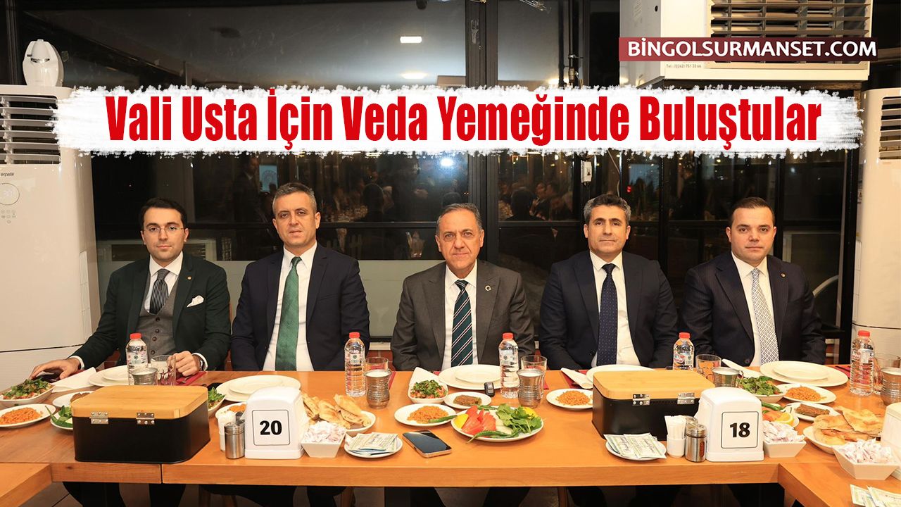 Son Valiler Kararnamesi ile Yalova Valiliği görevine atanan Vali Dr. Ahmet Hamdi Usta onuruna, Bingöl Belediyesi ve Bingöl Ticaret ve Sanayi Odası (BİNTSO) organizesinde bir veda yemeği düzenlendi. İl protokolünün ve şehrin dinamiklerinin eksiksiz katıldığı programda, Vali Usta’nın görev süresi boyunca Bingöl’de kurduğu gönül köprüleri bir kez daha perçinlendi.