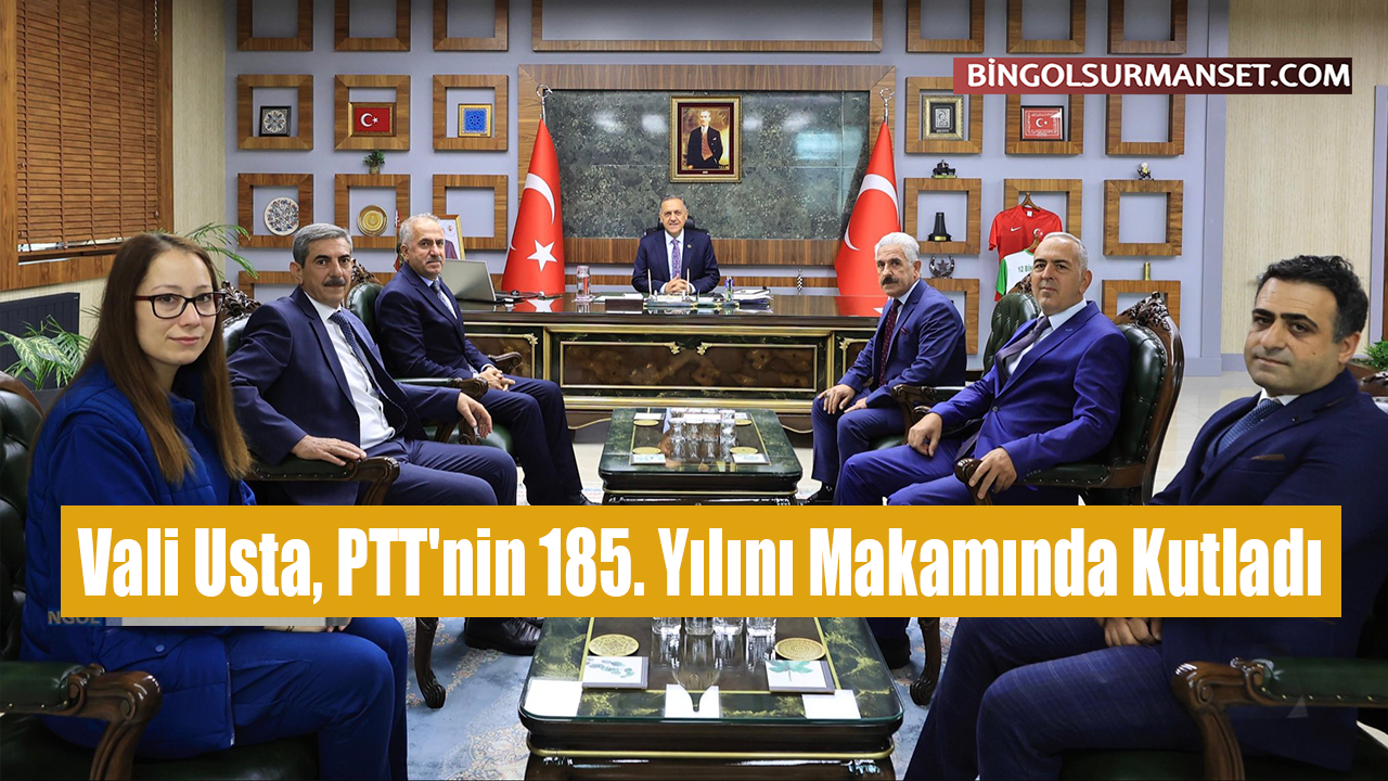 PTT'nin 185. kuruluş yıldönümü dolayısıyla PTT Bingöl Başmüdürü Abdulvahap Atalay ve beraberindeki heyet, Vali Dr. Ahmet Hamdi Usta'yı makamında ziyaret etti. Ziyarette, PTT'nin 185 yıllık köklü geçmişi ve hizmetleri ele alındı.