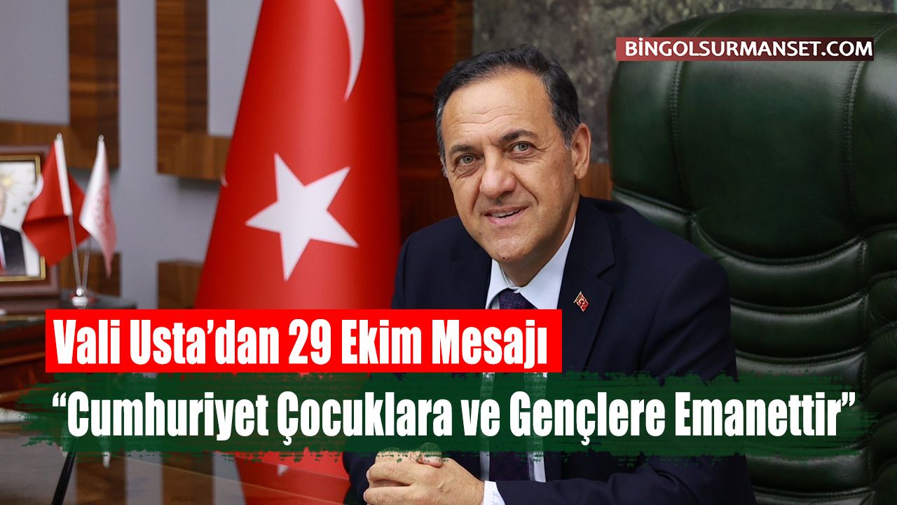 Mesajında gençlere ve çocuklara özel bir yer ayıran Vali Usta, “Cumhuriyet sizlere emanettir. Bu emaneti koruyacak, onu çağın gerekleriyle daha da yüceltecek olan sizlersiniz” çağrısında bulundu. Vali Usta, mesajının sonunda Cumhuriyet’in kurucusu Gazi Mustafa Kemal Atatürk ve İstiklal Mücadelesi’nin tüm kahramanlarını rahmet ve minnetle andı. Bingöllülerin ve tüm vatandaşların Cumhuriyet Bayramı’nı kutladı.