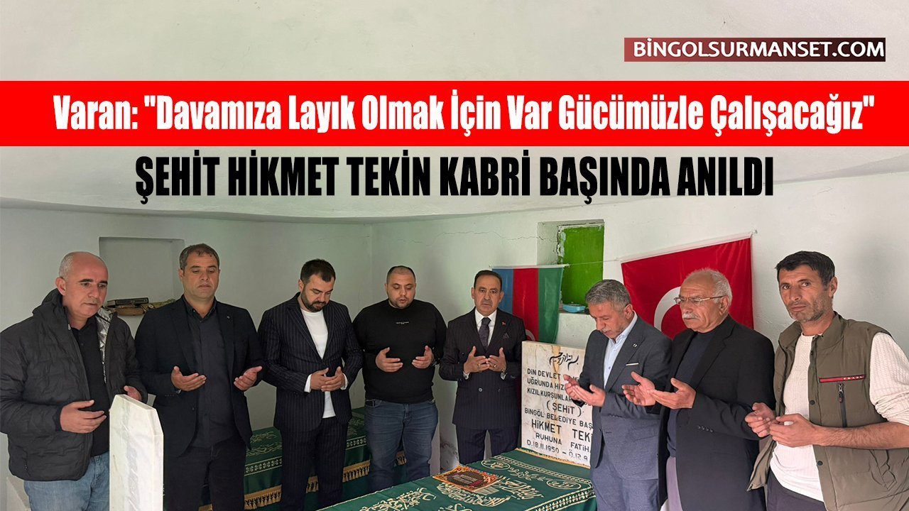 MHP Bingöl İl Başkanlığı'nda görev devir teslim töreni öncesinde, yeni İl Başkanı Emin Varan ve beraberindeki heyet, Şehit Belediye Başkanı Hikmet Tekin'i kabri başında ziyaret ederek dua etti. Varan, "Bugün, Bingöl’ümüzün kıymetli değeri, Şehit Belediye Başkanımız Hikmet Tekin’i kabri başında rahmet, minnet ve dualarla andık. Aziz hatırası önünde bir kez daha ifade ediyoruz ki; bu dava şehitlerimizin emanetidir. Emanete leke sürdürmeyeceğiz" ifadelerini kullandı.