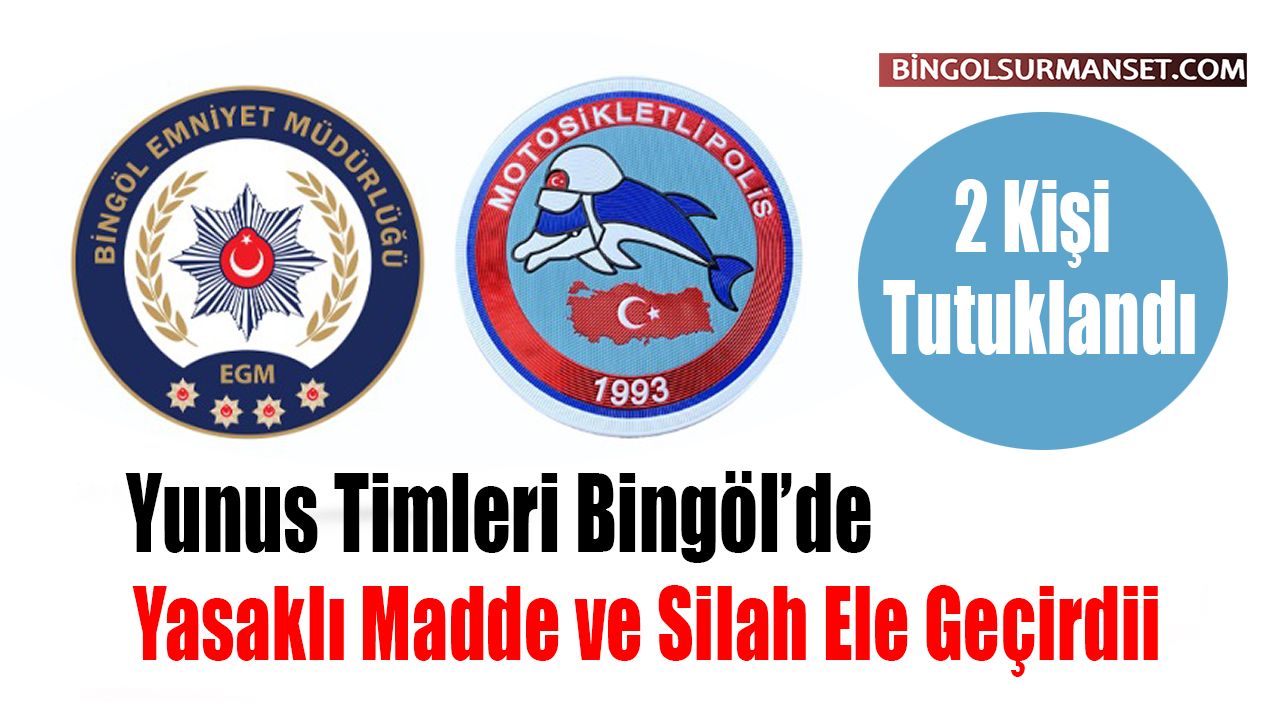 Bingöl İl Emniyet Müdürlüğü Asayiş Şube Müdürlüğüne bağlı Motosikletli Polis Timleri (Yunuslar) tarafından yapılan çalışmalar sonucunda, şüpheli iki şahsın üzerinde farklı türde suç unsuru materyaller ele geçirildi.