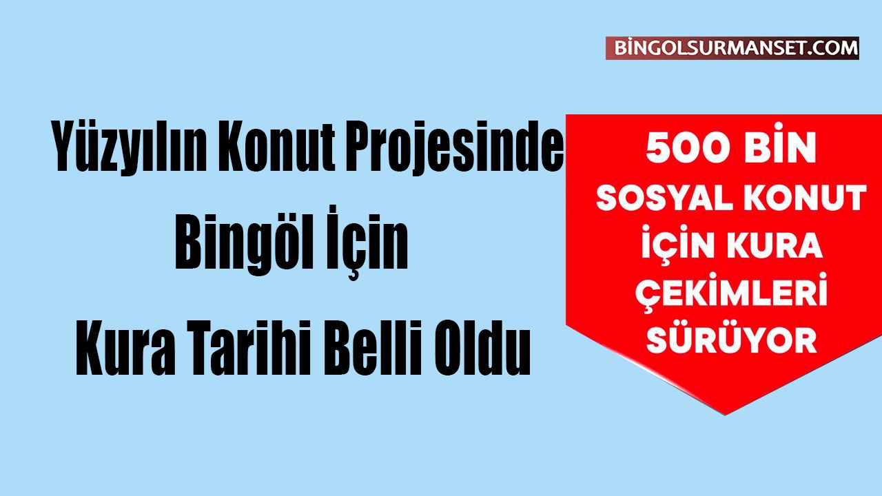 Cumhurbaşkanı Recep Tayyip Erdoğan'ın kamuoyuna duyurduğu ve 500 bin sosyal konutun inşa edileceği Yüzyılın Konut Projesi için kura heyecanı devam ediyor. 5-11 Ocak 2026 tarihleri arasında gerçekleştirilecek yeni kura çekimlerine 14 şehir daha katılacak. Bingöl için belirlenen kura tarihi ise 10 Ocak 2026.